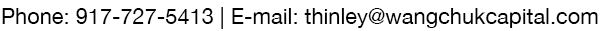 Wangchuk Capital, LLC (“RIA Firm” and “WC”) is a registered investment adviser located in New York. WC may only transact business in those states in which it is registered or qualifies for an exemption or exclusion from registration requirements. This website is limited to the dissemination of general information pertaining to its advisory services, together with access to additional investment-related information, publications, and links. Accordingly, the publication of this website should not be construed by any consumer or prospective client as a solicitation to effect, or attempt to effect, transactions in securities, or as the rendering of personalized investment advice for compensation over the Internet. Any subsequent direct communication with a prospective client shall be conducted by a representative who is either registered or qualifies for an exemption or exclusion from registration in the state where the prospective client resides. For information regarding the registration status of WC, please contact the state securities regulators for those states in which it maintains a registration filing. A copy of the current written disclosure statement, discussing business operations, services, and fees, is available at the SEC’s investment adviser public information website – adviserinfo.sec.gov – or from Wangchuk Capital, LLC upon written request. WC does not make any representations or warranties as to the accuracy, timeliness, suitability, completeness, or relevance of any information prepared by any unaffiliated third party, whether linked to this site or incorporated herein, and takes no responsibility therefor. All such information is provided solely for convenience, and users should be guided accordingly. This website and its content are provided for informational purposes only. Investments involve risk and, unless otherwise stated, are not guaranteed. Users are encouraged to consult with a qualified financial adviser and/or tax professional before implementing any investment strategy. Use of this website does not create an advisory or fiduciary relationship between the user and WC. Any advisory relationship will be established only after the execution of a written agreement between WC and the client. Certain statements herein may constitute “forward-looking statements” based on current expectations, estimates, projections, opinions, and beliefs. Such statements involve known and unknown risks and uncertainties, and actual results may differ materially from those expressed or implied. WC does not collect personally identifiable information from users unless it is voluntarily provided. Any information submitted through this website will be used solely for legitimate business purposes and will not be shared with unaffiliated third parties except as required by law. Electronic communications through this website or via email may not be secure, and users should avoid sending confidential or sensitive information through unencrypted channels. All content on this website, including text, graphics, and logos, is the property of Wangchuk Capital, LLC unless otherwise noted, and may not be reproduced or distributed without prior written permission. References to any third-party products, services, or websites are provided solely for convenience and do not constitute an endorsement or recommendation by WC. Past performance is not indicative of future results. Investing in small or micro-cap companies carries additional risks, including illiquidity, higher volatility, and potential loss of capital. International investments involve additional risks such as currency fluctuations, political instability, and differing accounting standards. This website and the information provided are not intended to offer investment, tax, or legal advice.